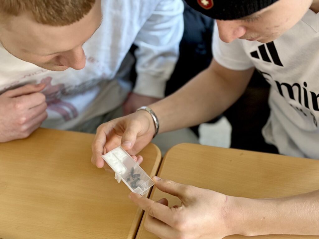 Für besonderes Interesse sorgte auch das Anschauungsmaterial, das er mitgebracht hatte: Die Schüler*innen konnten eine Bienenkönigin aus nächster Nähe betrachten und so den Aufbau eines Bienenstaates besser nachvollziehen. Außerdem gab es eine kleine Honigverkostung, bei der verschiedene Honigsorten probiert und miteinander verglichen werden konnten.