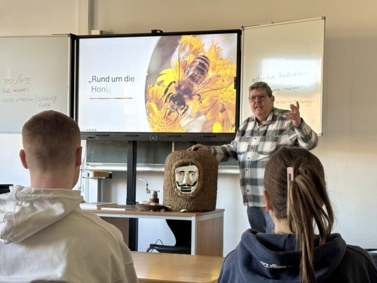 Tierwirtschaftsmeister im Fachbereich Bienenhaltung und Biologe Andreas Le Claire, in Imkerkreisen auch als „Bienenpapst“ bekannt, war zu Gast an der Wolfgang-Borchert-Gesamtschule.