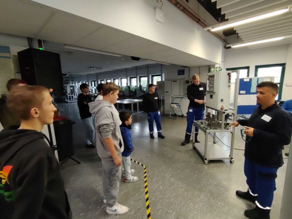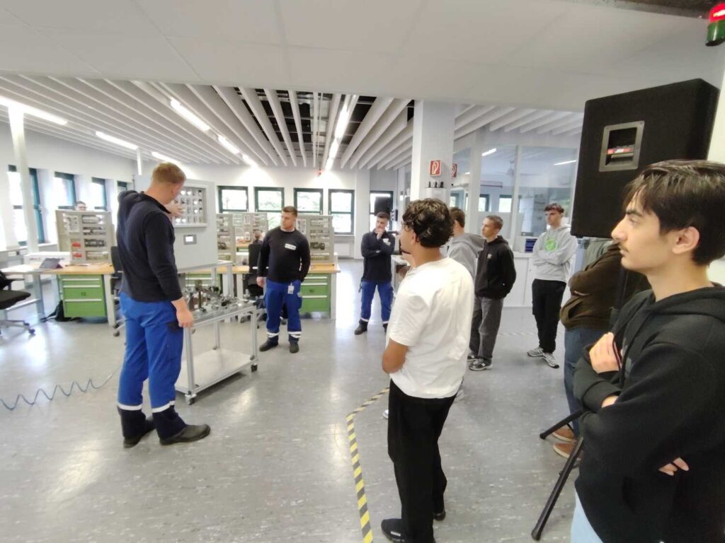 Begrüßt wurde die Gruppe von Herrn Özbay, Meister und Ausbilder bei Westnetz. Er stellte die Werkstätten am Standort vor und informierte über die vielfältigen Ausbildungsmöglichkeiten. Rund zwei Stunden lang erhielten die Schüler*innen spannende Einblicke in verschiedene Ausbildungsjahre und -berufe. Besonders beeindruckend war, dass sich die Auszubildenden eigens auf den Besuch vorbereitet hatten und ihre Projekte sowie anspruchsvolle Werkstücke präsentierten.