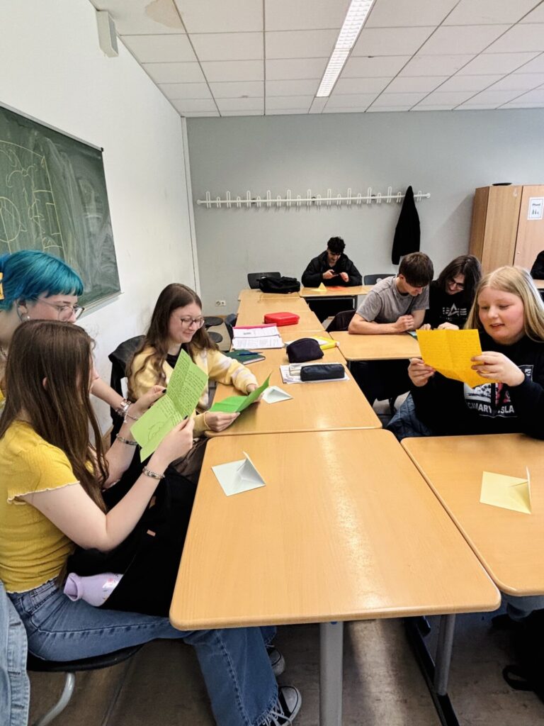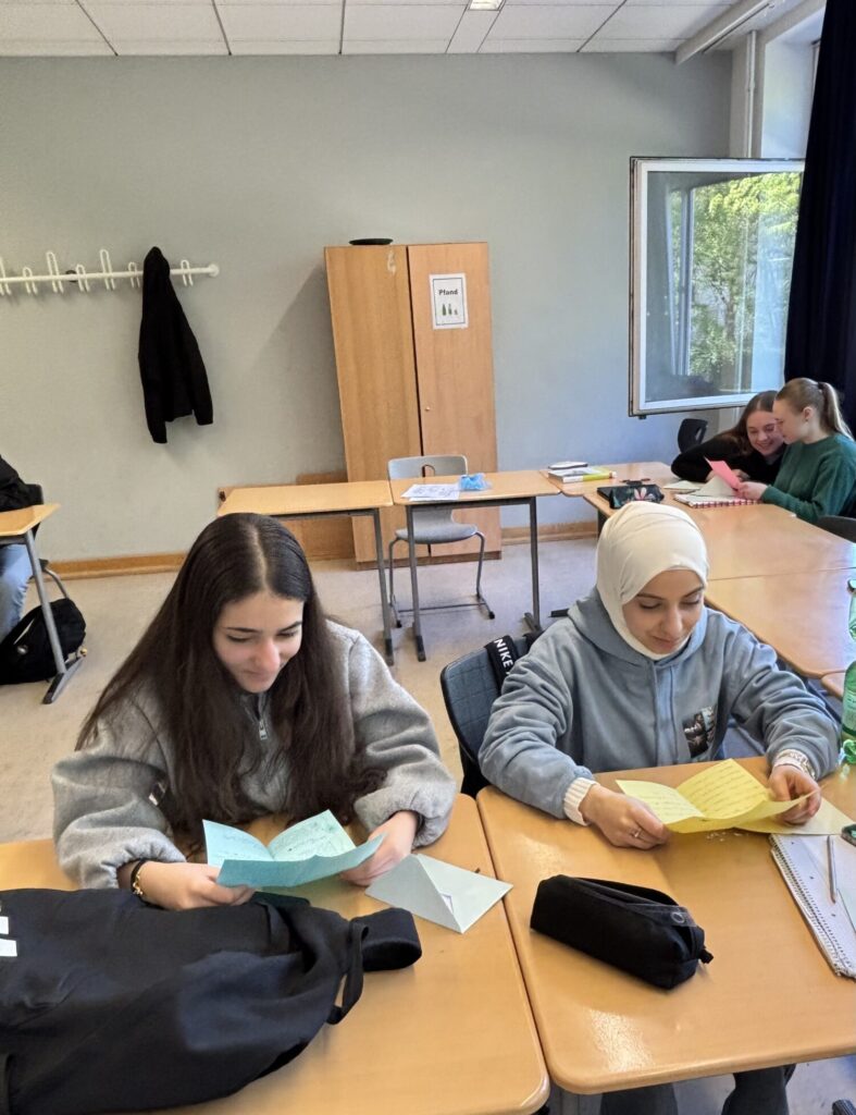 Ein besonderes Highlight des Aufenthalts war das besagte Briefprojekt. Unsere Schüler*innen der 11. Jahrgangsstufe der WoBoGe haben im Vorfeld der Hospitation persönliche Briefe auf Englisch und auf Deutsch geschrieben, in denen sie sich selbst, ihre Hobbys sowie ihren Alltag und das Schulleben in Deutschland beschrieben haben. Diese authentische Lernsituation führte zu viel Freude und bot viele Anregungen, sich über kulturelle Unterschiede und Gemeinsamkeiten Gedanken zu machen. Die Neugier im Hinblick auf die Alltagswelt der Schüler*innen war geweckt. Fragen wie z. B. „Wie lange haben die Waliser eigentlich Schule?“, „Wann dürfen sie ihren Führerschein machen?“ und „Wie ist das Leben in Wales eigentlich so?“ wurden zunächst untereinander diskutiert und dann in die Briefe geschrieben.