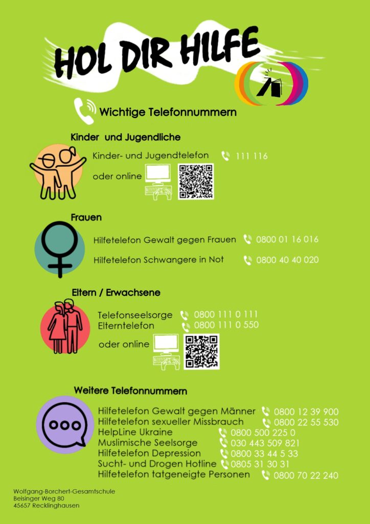 • Beratung und Unterstützung: Wir bieten vertrauliche Beratungsgespräche für Schüler*innen, Eltern und Lehrkräfte an. Dabei stehen wir bei Problemen im Schulalltag, persönlichen Krisen, familiären Konflikten oder sozialen Schwierigkeiten helfend zur Seite.